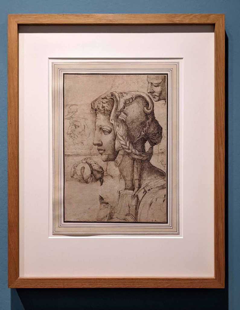 It was interesting to get a glimpse of the amount of work an artist would do before they even thought about picking up the paintbrush. From a lacework of lines to a fully finished design – drawings take many forms. Sometimes the artist sketches a first vague idea. Sometimes they would try out variations of a figure, study the human form or the folds of a drape – often done on the smallest pieces of paper.