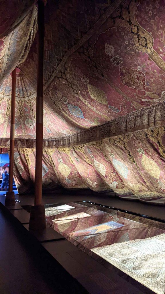 The Turkish Chamber houses one of the oldest and most magnificent collections of Ottoman art outside of Turkey. The Electors of Saxony, between the 16th and 19th centuries gathered a wealth of turquerie treasures. The Elector of Saxony frequently dressed up as the Sultan in court festivals and used imported camels and Arabian horses. The largest object in the collection is the 3 masted tent made with supreme craftsmanship in gold and silk and it was a rare treat to be able to see up close.