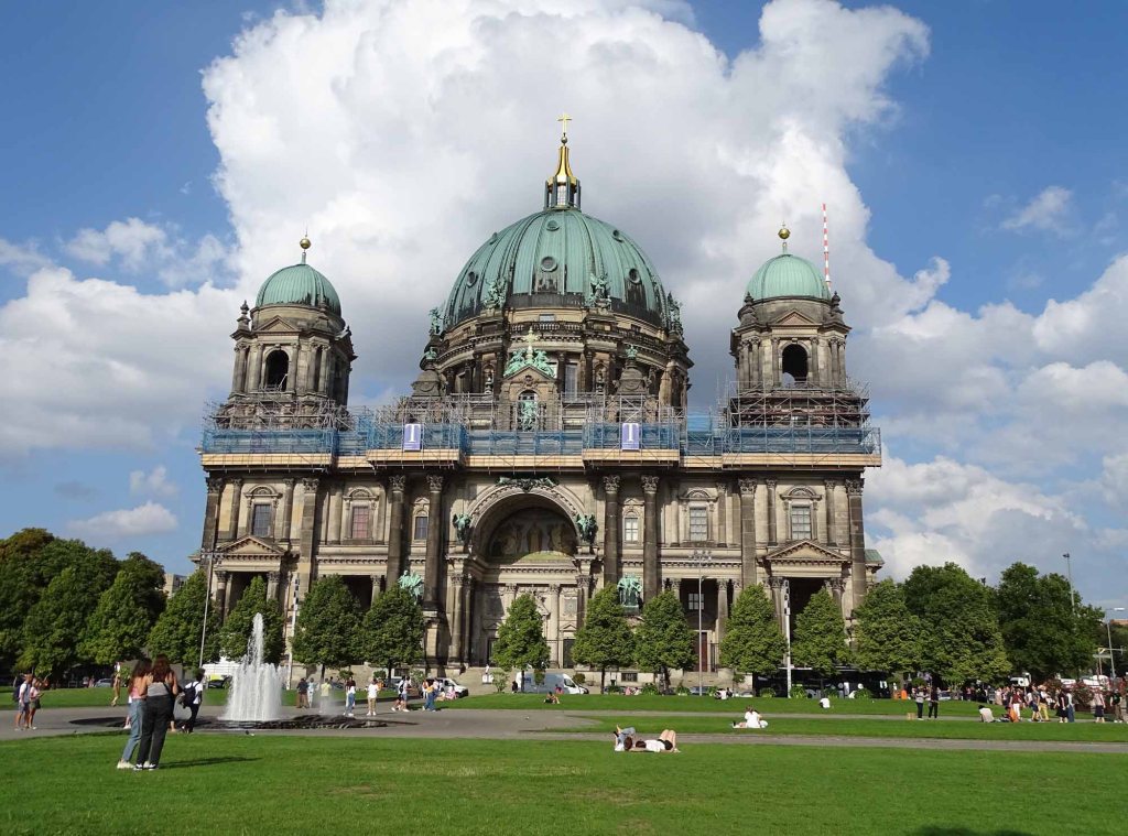 The Berlin Cathedral, also known as the Evangelical Supreme Parish and Collegiate Church, is a German Evangelical church located on Museum Island near the museums. It was built between 1894 and 1905 in the Italian Renaissance style, replacing a smaller baroque cathedral on the same site. In May 1944, during World War II, a firebomb struck the dome and severely damaged the building. Reconstruction was not fully completed until 2002.