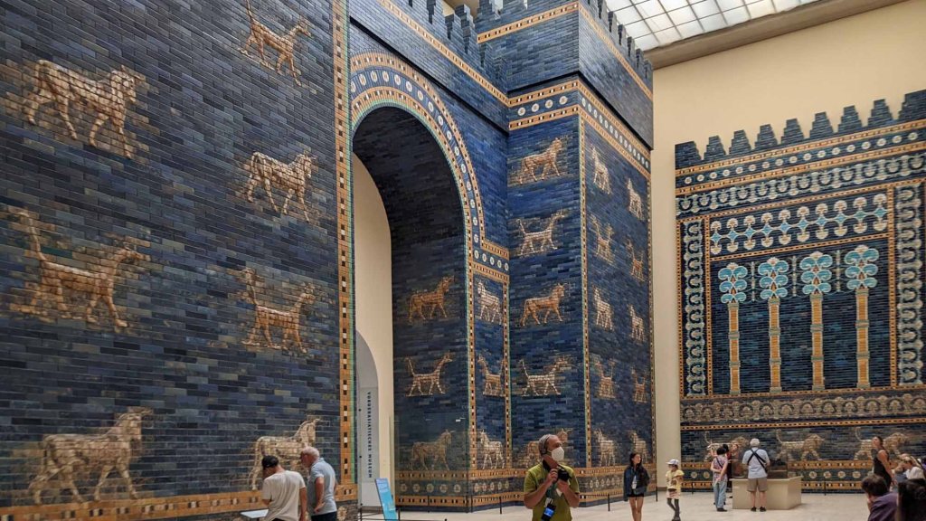 The Pergamon Museum, which opened in 1930, houses objects from Mesopotamia, Syria, Anatolia, Babylon and many ancient Islamic societies. It is famous for its impressive reconstructions of architectural structures from antiquity. Renovations of the museum are currently underway and the famous Pergamon Altar was closed. We were, however, awestruck when we saw the huge recontructed Ishtar Gate and Processional Way from ancient Babylon.