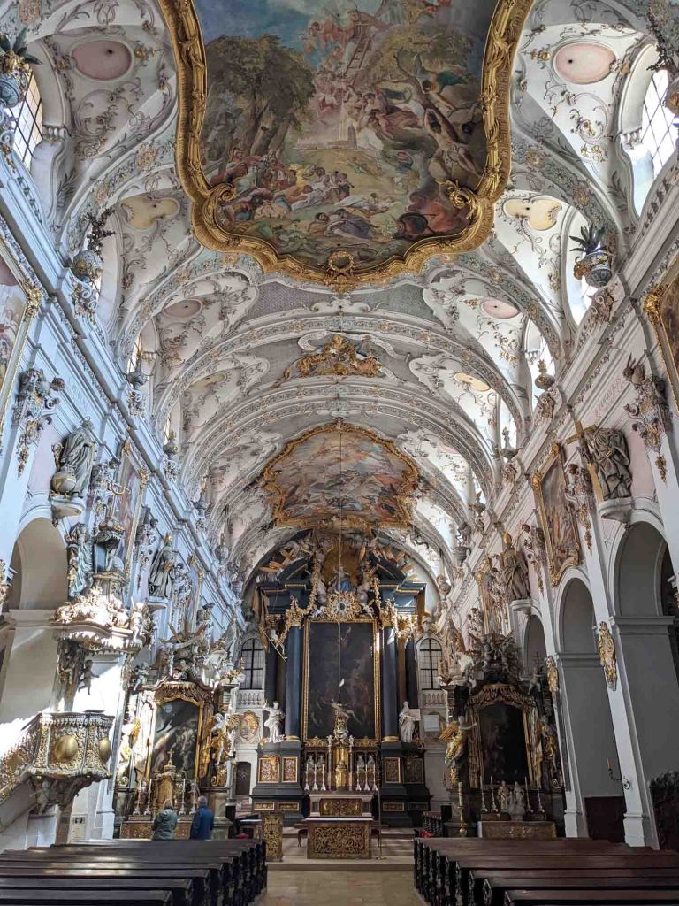 There is stunning gold ornamentation on the ceilings and elaborate Rococo styled interior walls. A service was about to begin so we had to cut short our stay, but this church is worth a visit.