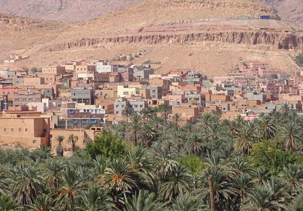 Tinghir, population 40,000 is a small but picturesque city that sits at the center of an attractive palm-tree filled oasis in the Wadi Todgha or Todra Canyon. The deep gorge was created over the centuries by the waters of the Todra river steadily carving its way through the limestone mountains.