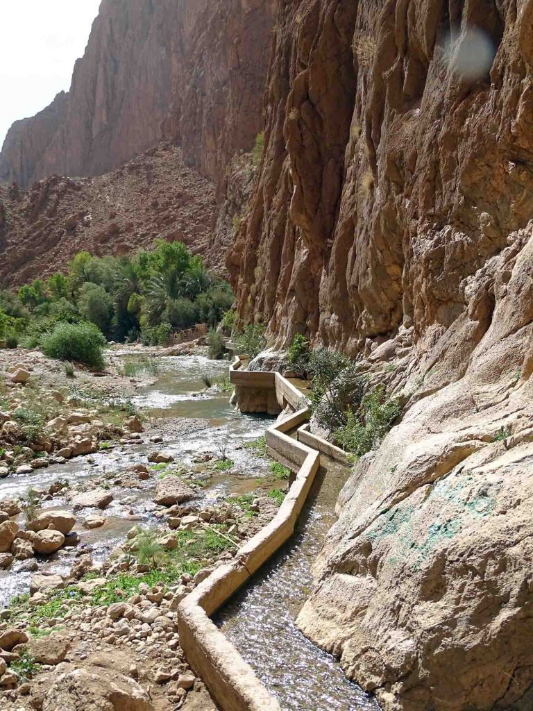 A local guide took us on an easy 10k or 6.2 mile hike through both the village and the surrounding valley. The village was quiet even when we passed school children during recess. The children waved and smiled but did not approach us. Elementary schools everywhere in Morocco seem to have brightly painted walls and fences and we were soon able to identify a school because of its colors, because the buildings have no other identifying marks that we could see. The surrounding mountains and the famous Rose Valley – where Morocco’s rose oil is sourced from – made a wonderful setting and interesting 4-hour hike.