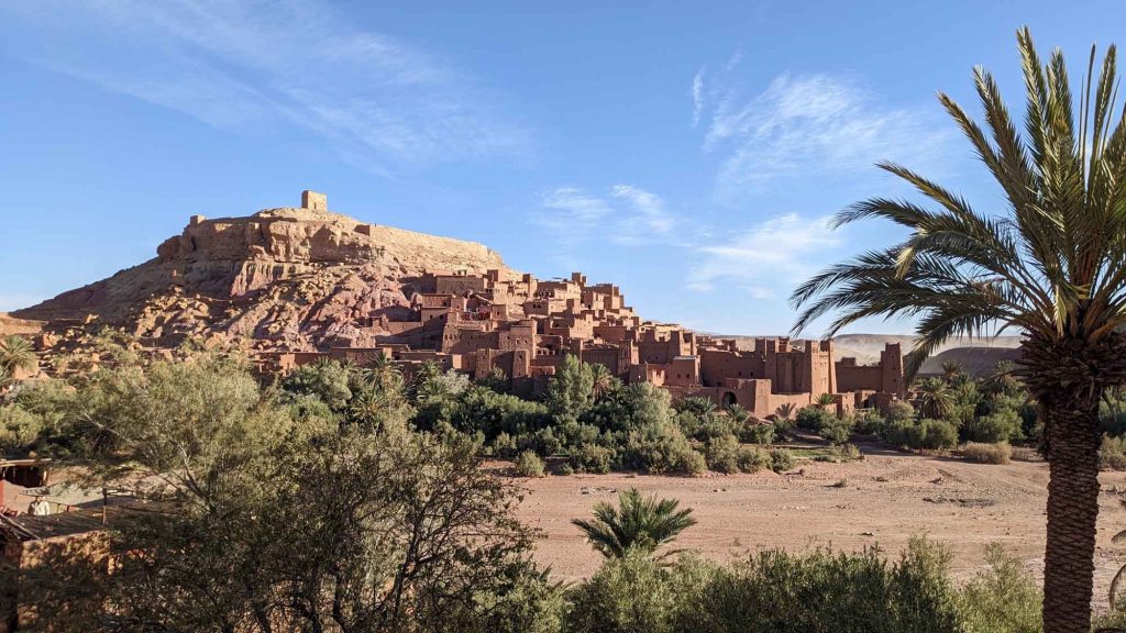 A UNESCO site in 1987, Aït Benhaddou (written in the Berber language like this: ⴰⵢⵜ ⴱⴻⵏⵃⴰⴷⴷⵓ), is a historic clay built ksar, or fortified Berber village. Perched on a hilltop the iconic site of the ksar dates to the 11th century although the current buildings are believed to have been rebuilt in the 17th century. Aït Benhaddou once controlled the trade caravans that passed through from sub-Saharan Africa. This place looked somewhat recognizable because it has been used as a filming location for dozens of movies – Lawrence of Arabia, Sodom and Gomorrah, Oedipus Rex, Game of Thrones, Marco Polo, Gladiator, Babel, The Mummy, American Sniper and Mission Impossible  – to name a few.