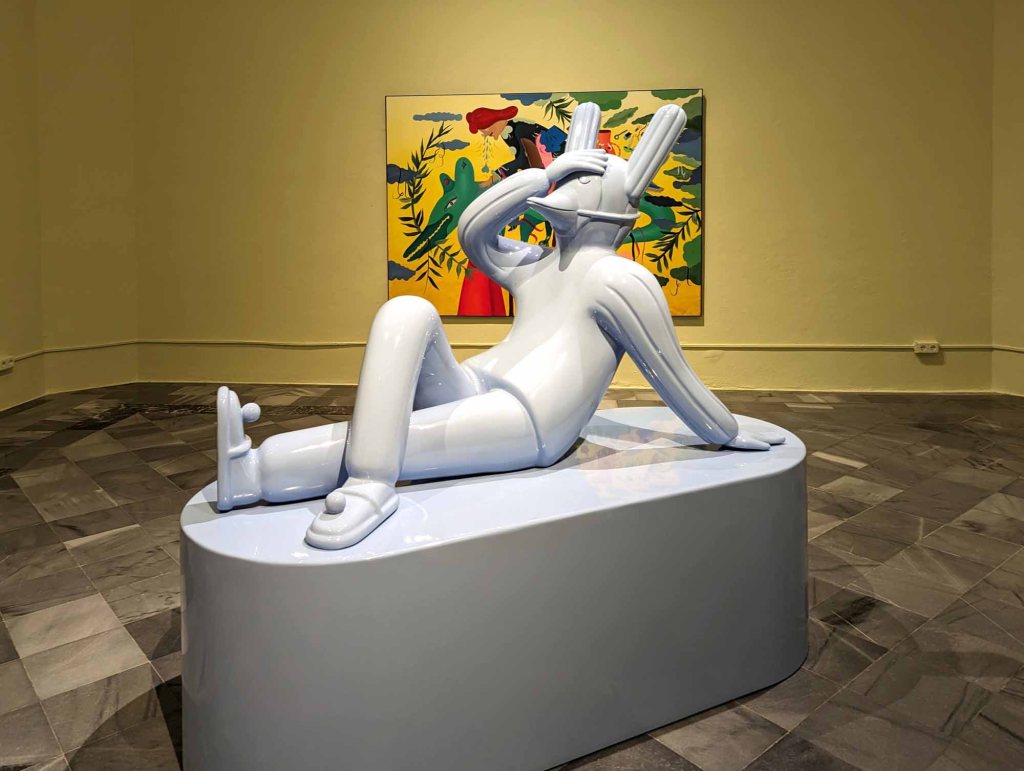 Another exhibition “Paths to Modernity in Les Falles” by local artist Alfredo Ruiz Ferrer (1944-) piqued our interest because of the Las Fallas connection. Ruiz began training in the trade of the Fallas workshops when he was 13 years old and for decades he created pieces for Falles, winning first prize in the Special Section in 1974, 2008 and 2013. The exhibition focuses on his decorative pieces and we felt the piece below, entitled ‘Encounter with art’, 1990 was intriguing. If you look closely you may see art by Miro, Mondrian, Gris and Kandinsky included in the composition.