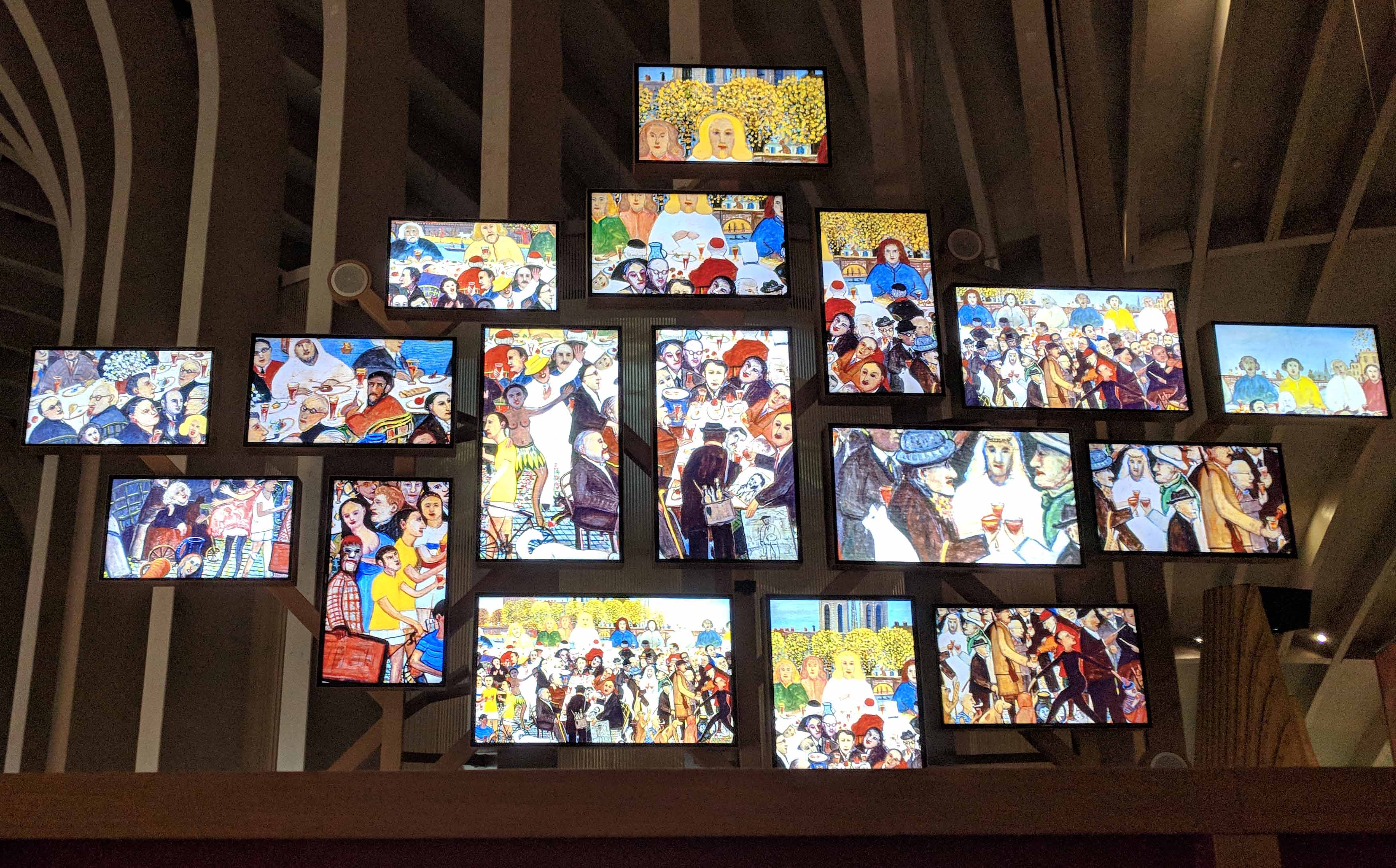 Here many different but related pictures were displayed together. There were multiple versions of this display that were shown in a loop.