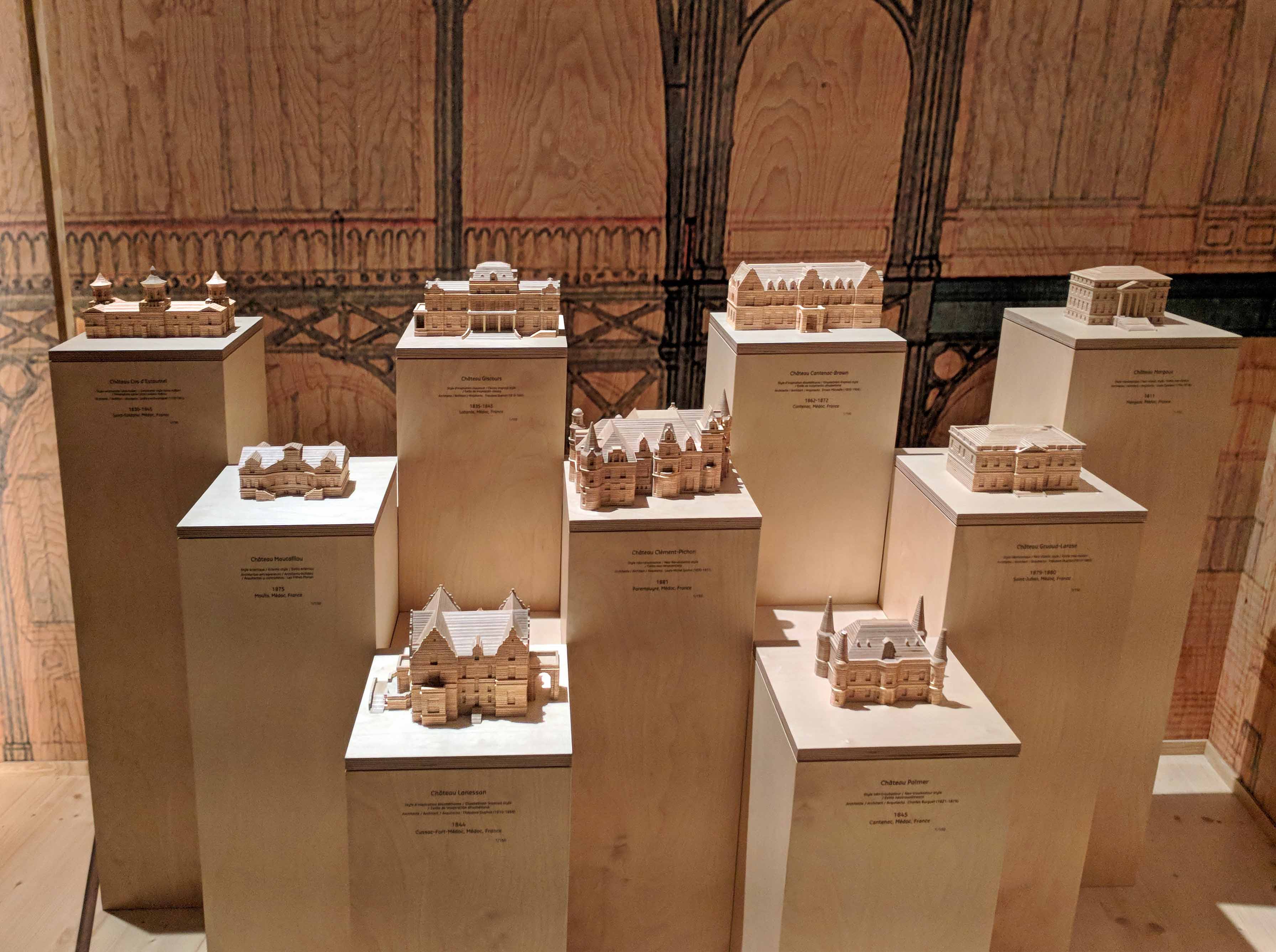 Multiple and varied ways of displaying information kept the museum interesting. Here, wooden models of a selection of Grand Cru Chateaux.