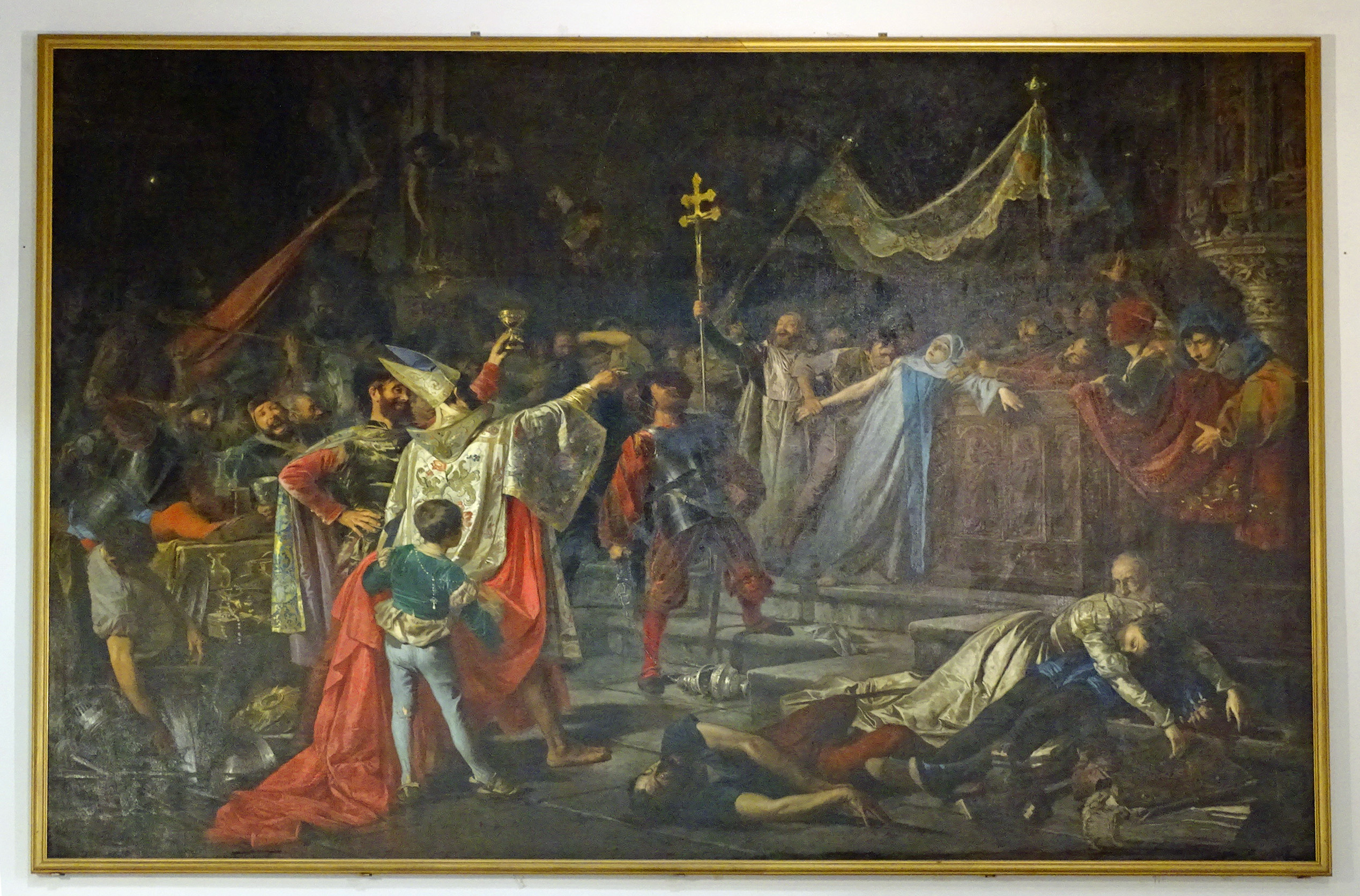 The work is inspired by the Saco de Roma , which was carried out on May 6, 1527 by the Spanish and German troops of the Emperor Charles I of Spain, and represents a group of soldiers looting and profaning the interior of a Roman church. (1887)